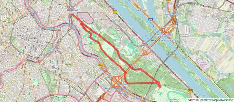 Selbst möchte ich im April 2026 erstmalig am Charity Run teilnehmen und eine 10 Kilometer lange Strecke in den Prater Alleen laufen. Die abgebildete Route entspricht einer verkürzten Variante des Wiener Stadtwanderweg 9.